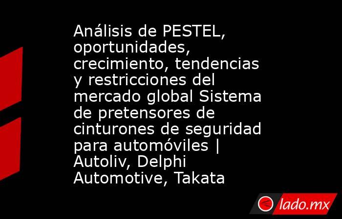 El informe de examen global “Sistema de pretensor de cinturones de seguridad automotrices market” muestra una investigación de gran alcance del mercado global de Sistema de pretensor de cinturones de seguridad automotrices. Incorpora la tasa de mejora del mercado durante el período evaluado. Ofreciendo una sinopsis concisa, el informe incorpora pronto la valoración y el volumen del mercado global de Sistema de pretensor de cinturones de seguridad automotrices. Asimismo, se centra en los principales elementos encargados de la mejora del mercado global de Sistema de pretensor de cinturones de seguridad automotrices. Asimismo, también presenta a los jugadores abrumadores en el mercado unidos con su participación de mercado de Sistema de pretensor de cinturones de seguridad automotrices.