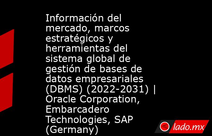 Información del mercado, marcos estratégicos y herramientas del sistema global de gestión de bases de datos empresariales (DBMS) (2022-2031) | Oracle Corporation, Embarcadero Technologies, SAP (Germany) El Informativo Inmobiliario