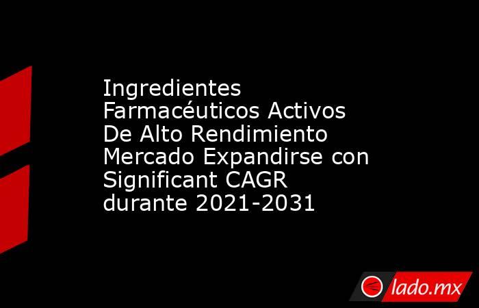 Informe de investigación de mercado Ingredientes Farmacéuticos Activos De Alto Rendimiento global de 2021 a 2031