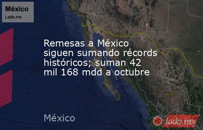Las remesas siguen llegando a México y acumulan nuevos máximos históricos. En el periodo enero-octubre de 2021 sumaron 42 mil 168 millones de dólares, monto que implicó un aumento de 25.6 por ciento.