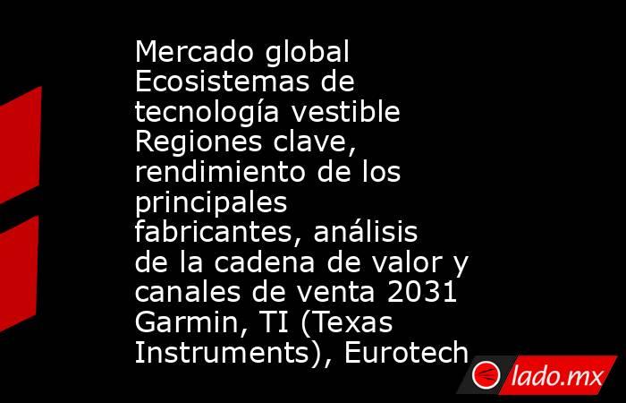 El mercado global de Ecosistemas de tecnología vestible se divide en función de la escritura del artículo, los clientes y los diferentes fragmentos. El desarrollo de cada sección del mercado de Ecosistemas de tecnología vestible se anticipa en función de sus extensiones más temprano que tarde. La información recopilada de las fundaciones administrativas es realista en la respuesta con el fin de evaluar el desarrollo de las porciones. Además, el mercado global de Ecosistemas de tecnología vestible se desarrolla como premisa de áreas, tales como: –