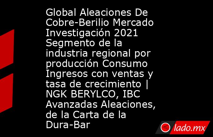 [Informe actualizado: 2021]: El mercado global de Aleaciones De Cobre-Berilio contiene los principales factores impulsores, los principales desafíos, las restricciones, las oportunidades, la perspectiva financiera, las principales tecnologías, las próximas estrategias, los Aleaciones De Cobre-Berilio actores del mercado , perfil de la empresa, sistema de supervisión y políticas. El informe de mercado global de Aleaciones De Cobre-Berilio también ofrece una proyección del alcance del mercado para el mercado de Aleaciones De Cobre-Berilio. El informe prevé además los principales segmentos del mercado de Aleaciones De Cobre-Berilio. Se predice el mercado global de Aleaciones De Cobre-Berilio con un rápido crecimiento de XX millones en USD con X.X% CAGR durante el período de pronóstico de 2021 a 2031.