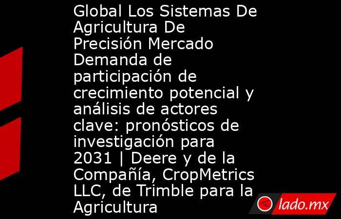 El informe de mercado global de Los Sistemas De Agricultura De Precisión resume algunos de los actores clave existentes en el mercado de Los Sistemas De Agricultura De Precisión, junto con una evaluación detallada. El informe describe todos los puntos sobre cómo los agentes del mercado apuntan al mercado en desarrollo de varias regiones. Se incluyen participación táctica reciente, asociaciones, acuerdos, fusiones y adquisiciones que tienen lugar en el mercado global de Los Sistemas De Agricultura De Precisión. El paso básico incluyó la investigación de todo el valor de mercado, sobre la base del mercado de Los Sistemas De Agricultura De Precisión del usuario final y la región geográfica.