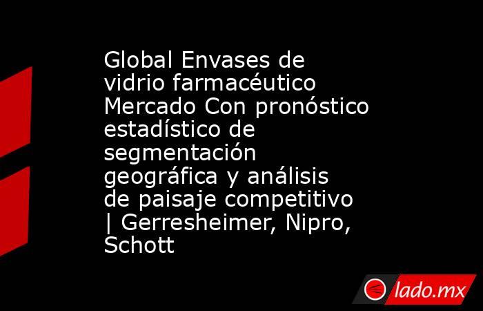 [Informe actualizado: 2021]: El mercado global de Envases de vidrio farmacéutico contiene los principales factores impulsores, los principales desafíos, las restricciones, las oportunidades, la perspectiva financiera, las principales tecnologías, las próximas estrategias, los Envases de vidrio farmacéutico actores del mercado , perfil de la empresa, sistema de supervisión y políticas. El informe de mercado global de Envases de vidrio farmacéutico también ofrece una proyección del alcance del mercado para el mercado de Envases de vidrio farmacéutico. El informe prevé además los principales segmentos del mercado de Envases de vidrio farmacéutico. Se predice el mercado global de Envases de vidrio farmacéutico con un rápido crecimiento de XX millones en USD con X.X% CAGR durante el período de pronóstico de 2021 a 2031.