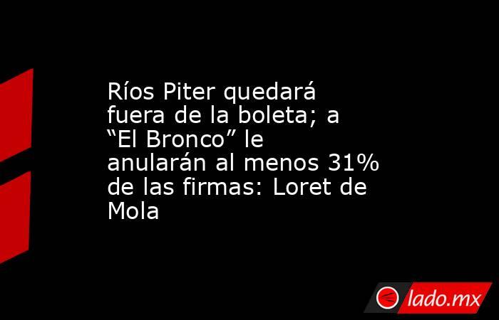 Ríos Piter quedará fuera de la boleta; a “El Bronco” le anularán al menos 31% de las firmas: Loret de Mola La Bandera Noticias