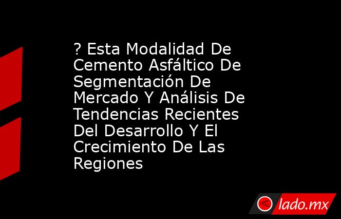 La creciente demanda del mercado de Esta Modalidad De Cemento Asfáltico y las nuevas tecnologías están cambiando constantemente la industria global. ¿Estás advertido?