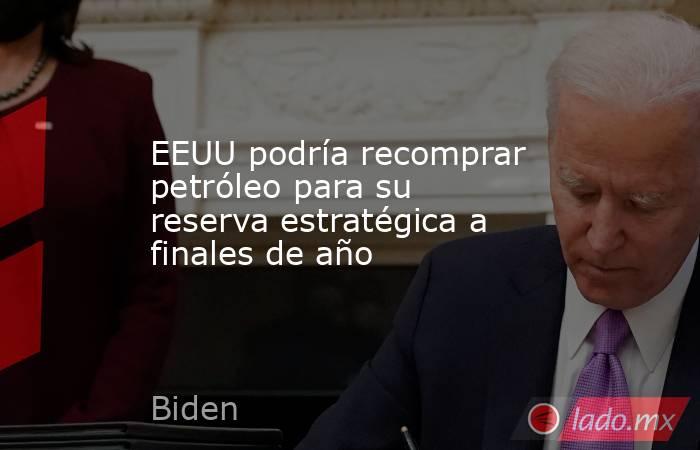 OROCOVIS, PUERTO RICO, 28 mar (Reuters) - Estados Unidos podría empezar a recomprar crudo para la Reserva Estratégica de Petróleo (SPR por su sigla en inglés) a finales de este año, después de que el presidente Joe Biden ordenara el año pasado la mayor venta de la historia de la reserva, dijo la secretaria de Energía, Jennifer Granholm. La intención del Gobierno es recomprar crudo para la SPR cuando los precios se sitúen en o por debajo de alrededor de 67-72 dólares el barril, después de que la