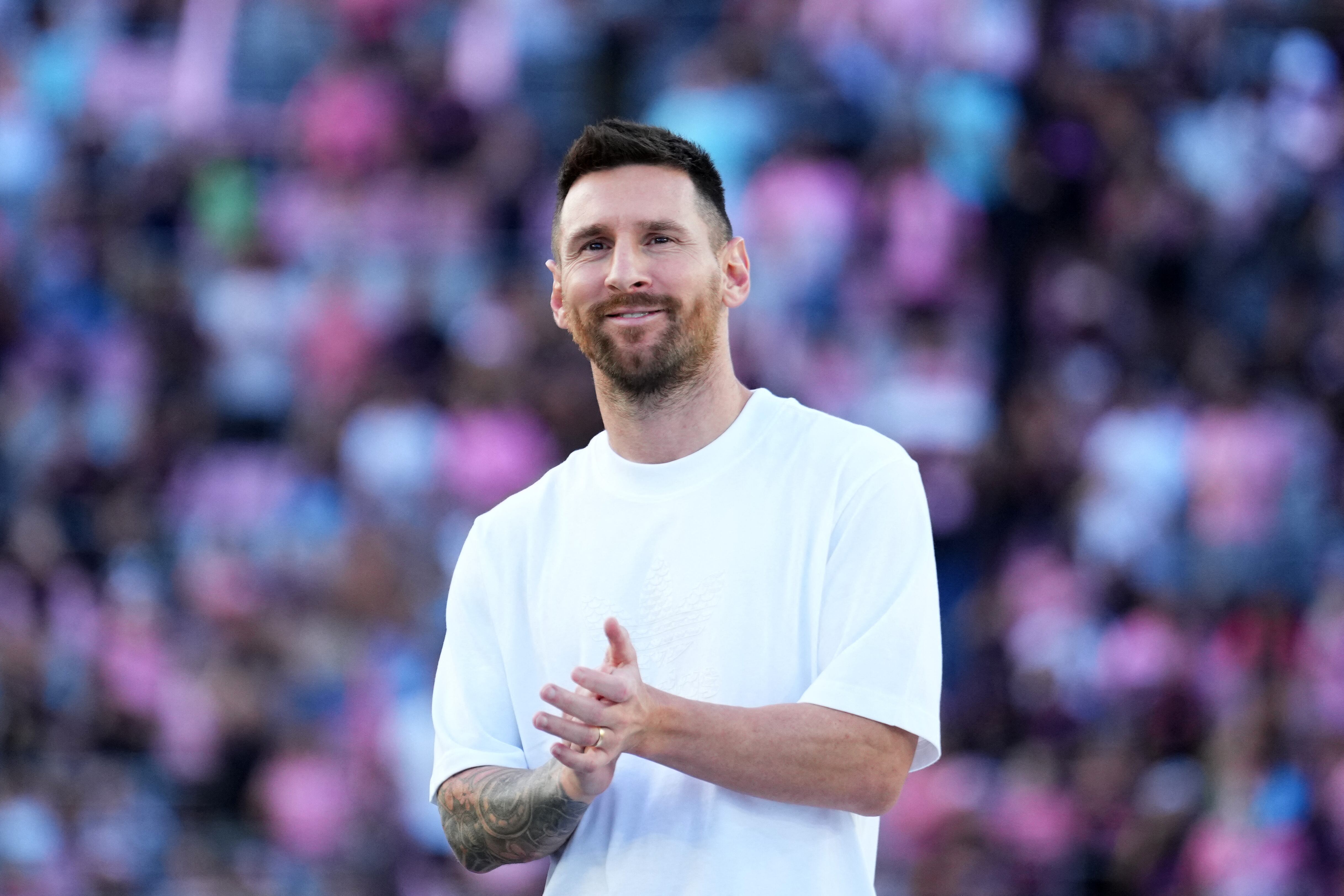 El futbolista de 37 años atravesó la extensa caminata hasta la mitad de cancha en medio de la ovación del público, que asistió a las tribunas del Chase Stadium para observar un momento del que también participó uno de los creadores de la franquicia, Jorge Mas. Esta personalidad recibió a Leo con un caluroso abrazo, captado por las cámaras del estadio, y soltó: “Ahora Leo, enfrente de tu gente queremos presentar un video”.