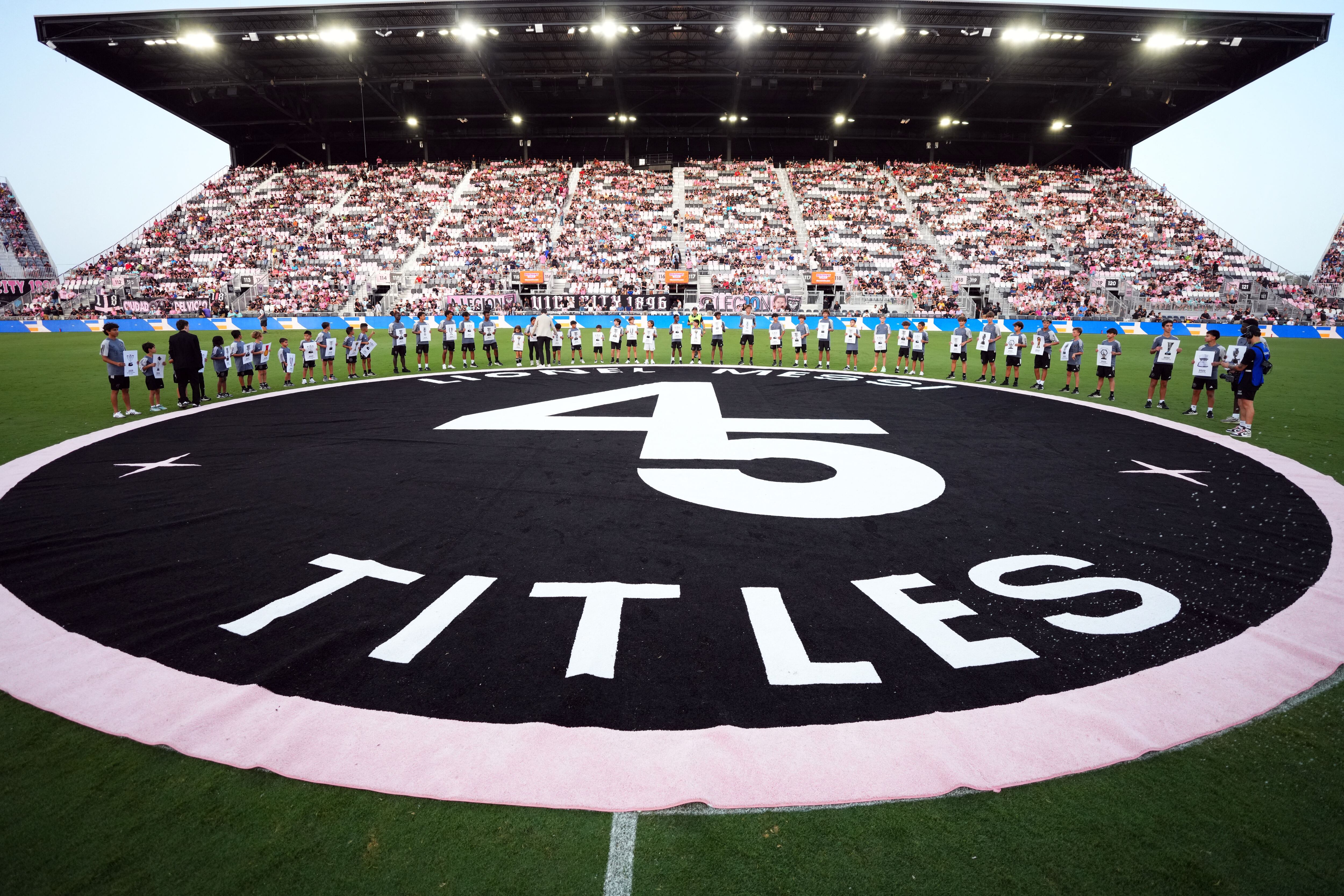 Todos estos trofeos fueron expuestos en la pieza audiovisual con distintos fragmentos e incluso se mostraron en el campo de juego porque unos niños posaron con papeles que tenían impresas cada una de las copas ganadas por el astro. El Inter Miami también le regaló un cuadro con el número 45 en el centro del lienzo, que fue exhibido por Lionel Messi y Jorge Mas en diferentes fotografías realizadas en el campo de juego.