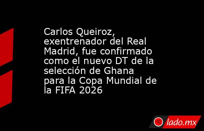 Carlos Queiroz dirigirá en otra Copa Mundial.Ghana nombró al portugués como nuevo seleccionador nacional, a menos de dos meses del torneo."La labor del entrenador Queiroz comienza de inmediato", señaló la Asociación de Fútbol de Ghana en un comunicado.Los ghaneses debutarán en el Mundial en el Grupo L contra Panamá el 17 de junio