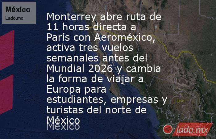 Belem Solís La aerolínea Aeroméxico inició operaciones de una nueva ruta directa entre Monterrey y París, con lo que amplía la conectividad internacional para el norte del país y fortalece los vínculos entre México y Europa. El nuevo vuelo conecta con el Aeropuerto Charles de Gaulle, convirtiéndose en el primer destino en Francia dentro d