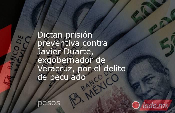 Por el delito de peculado, por un monto de 5 millones de pesos, el juez de control del Reclusorio Norte dictó prisión preventiva contra Javier Duarte, exgobernador de Veracruz