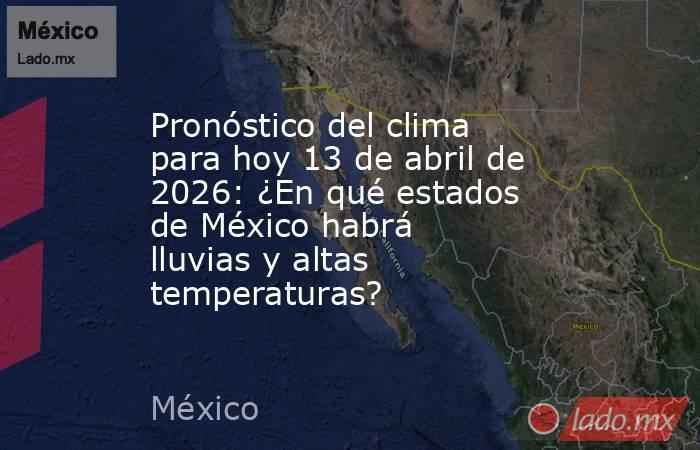 Para este lunes 13 de abril distintos fenómenos meteorológicos propiciarán lluvias, vientos fuertes, así como altas temperaturas en estados de México.