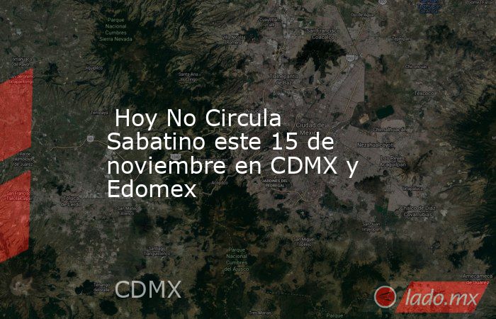 Monserrat VargasEl programa Hoy No Circula del sábado 15 de noviembre de 2025, aplica para todos los vehículos con holograma 2 y, por ser el tercer sábado del mes, los autos con holograma 1 terminación IMPAR. Lo anterior está vigente en las 16 alcaldías de la Ciudad de México (CDMX) y en algunos municipios del Estado de México (Edomex).Los