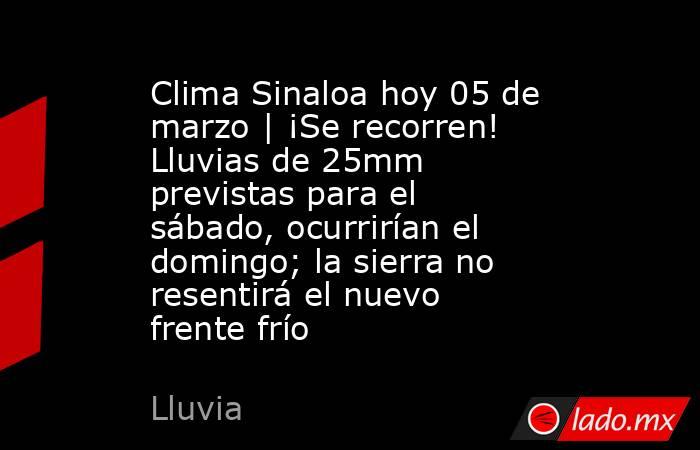 Clima Sinaloa hoy 05 de marzo | ¡Se recorren! Lluvias de 25mm previstas para el sábado, ocurrirían el domingo; la sierra no resentirá el nuevo frente frío. 08:25