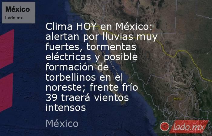 Clima HOY en México: alertan por lluvias muy fuertes, tormentas eléctricas y posible formación de torbellinos en el noreste; frente frío 39 traerá vientos intensos. 08:30