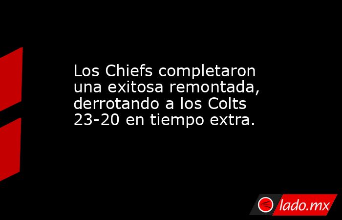 ¡La temporada sigue viva! Kansas City Chiefs remonta y vence en tiempo extra a Colts Los Chiefs evitan su tercera derrota al hilo y mantienen vivas sus esperanzas de Playoffs fvillalobosDom, 23/11/2025 - 15:50 Los Kansas City Chiefs p
