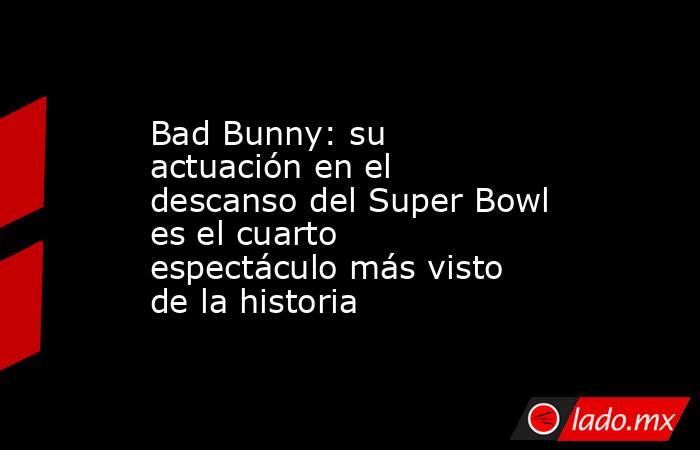 El 8 de febrero de 2026, Bad Bunny conquistó el intermedio del Super Bowl en California. Con una audiencia de 128,2 millones de televidentes, su actuación se convirtió en la cuarta más vista en la historia, superando incluso las de Rihanna y Katy Perry.