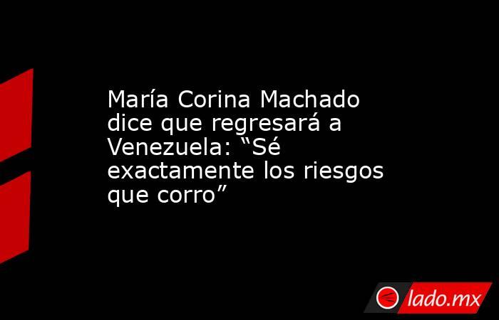 María Corina Machado confirmó que regresará a Venezuela: “Voy a estar en el lugar donde más pueda ayudar a nuestra causa”