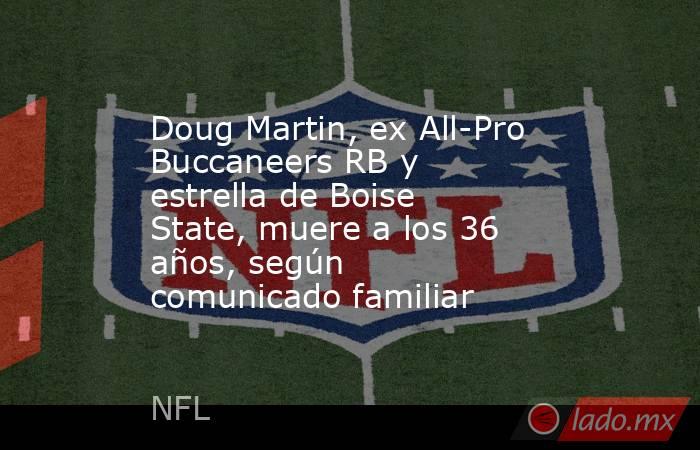Doug Martin, ex estrella de Boise State y corredor All-Pro de los Buccaneers, falleció, según informó su familia en un comunicado el domingo. Tenía 36 años.