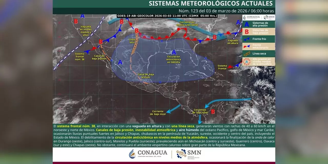 Se prevén lluvias fuertes en Jalisco y Chiapas, rachas de hasta 70 km/h en el Istmo y calor intenso en el sur del paísEl cargo Frente frío 38 activa lluvias y vientos; persiste onda de calor en el sur apareció primero en El Imparcial de Oaxaca.