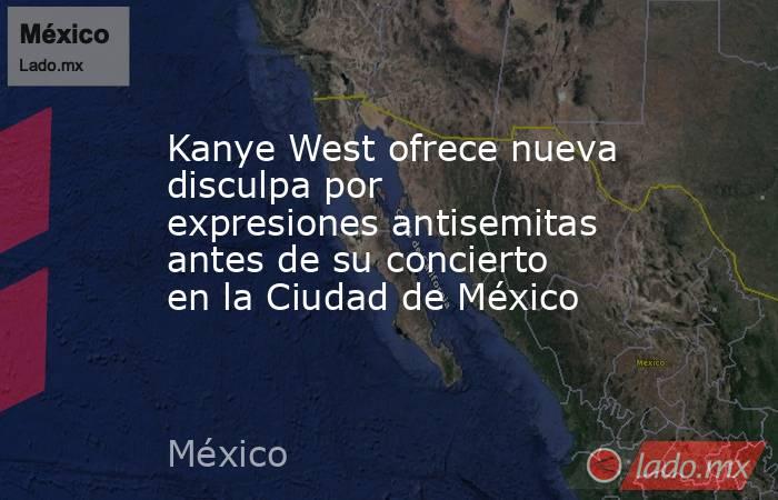 Kanye West ofrece nueva disculpa por expresiones antisemitas antes de su concierto en la Ciudad de México Ciudad de México, México.– A pocos días de su regreso a los escenarios mexicanos, el rapero y productor Kanye West, conocido actualmente como Ye, emitió una nueva disculpa pública por los comentarios y acciones de carácter antisemita q