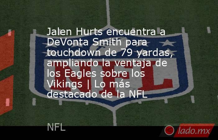 Jalen Hurts encontró a DeVonta Smith para un touchdown de 79 yardas, ampliando la ventaja de los Philadelphia Eagles sobre los Minnesota Vikings. Fuente