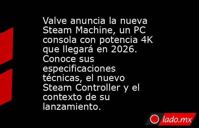 Valve ha anunciado oficialmente una nueva Steam Machine, un PC en formato de consola compacto diseñado para jugar en el televisor del salón, y que llegará a principios de 2026 junto a un renovado Steam Controller .