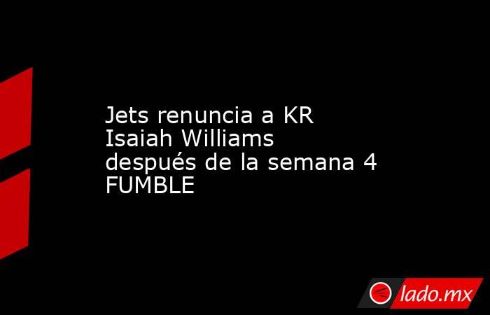 The New York Jets waived Isaiah Williams on Saturday, just days after the return specialist fumbled on a second-half kickoff in Monday night"s 27-21 l