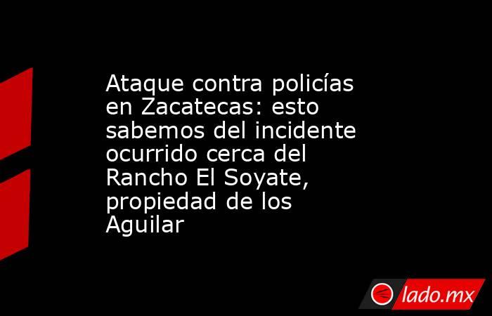 Un ataque armado contra elementos de la Policía Estatal de Zacatecas se registró este jueves en las inmediaciones de la comunidad de Tayahua, en el municipio de Villanueva, cerca del rancho El Soyate, propiedad de la familia Aguilar.Las autoridades aclararon que la agresión fue contra un convoy de fuerzas de seguridad que circulaba por la carre