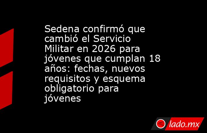 Calendario del Servicio Militar Nacional 2026: registro, sorteo y liberación de cartilla Jóvenes mexicanos deberán cumplir con las fases establecidas por la Secretaría de la Defensa Nacional m.alcantaraMié, 14/01/2026 - 18:52 El