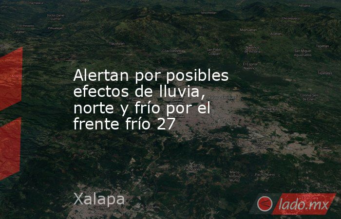 Yhadira Paredes/Xalapa, Ver.- El frente frío número 27 que atravesará el fin de semana a la entidad veracruzana dejará norte intenso, nublados, nieblas y lluvias, así como bajas temperaturas con caída de nieve y aguanieve en la cima del Cofre del Perote. Al respecto, la jefa del Departamento de Hidrometeorología de la Comisión Nacional d