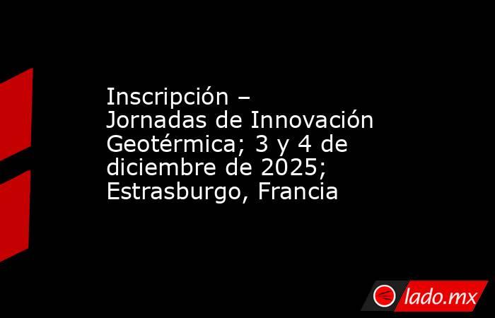 Jornadas de Innovación Geotérmica 2025 La inscripción está abierta para los próximos Días de Innovación Geotérmica 2025 organizados por ETIP-Geothermal, que tendrán lugar los días 3 y 4 de diciembre en Estrasburgo, Francia. Ya están abiertas las inscripciones para el Jornadas de Innovación Geotérmica 2025 organizado por el Plataforma E