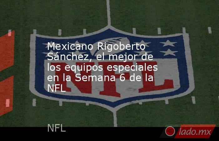 Rigoberto Sánchez, pateador de origen mexicano de los Indianapolis Colts, fue distinguido este miércoles como el mejor jugador de equipos especiales de la Conferencia Americana (AFC), en la semana 6 de temporada 2024 de la NFL.Una designación que fue celebrada por su equipo en sus redes sociales con una publicación en la que aparece una fotogra
