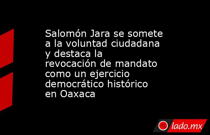 Salomón Jara se somete a la voluntad ciudadana y destaca la revocación de mandato como un ejercicio democrático histórico en Oaxaca Misael Sánchez El gobernador de Oaxaca, Salomón Jara Cruz, participó este domingo en la jornada de revocación de mandato, a la que calificó como un proceso histórico, democrático...