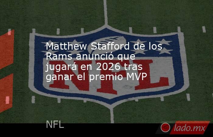 SAN FRANCISCO — La jubilación tendrá que esperar un poco más Mateo Stafford. Después fue nombrado MVP de la NFL por primera vez en sus 17 años de carrera en la NFL, Rams de Los Ángeles El mariscal de campo anunció en el escenario de NFL Honors que regresaría para la temporada 2026. Antes del […]