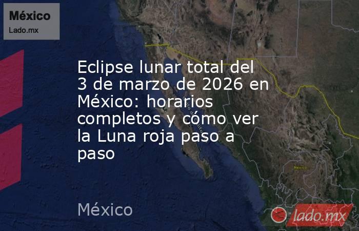 Eclipse lunar total del 3 de marzo de 2026 en México: conoce los horarios, fases y el mejor momento para ver y fotografiar la Luna roja antes del amanecer.The post Eclipse lunar total del 3 de marzo de 2026 en México: horarios completos y cómo ver la Luna roja paso a paso appeared first on Proyecto Puente.