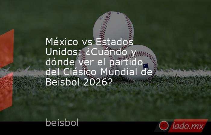 México._México vs Estados Unidos será el tercer partido de la Selección Mexicana de Beisbol en el Clásico Mundial 2026.El encuentro está programado para el lunes 9 de marzo y será transmitido por el Canal 9, ESPN, Disney+, ViX y TUDN. Después de ganar por nocaut a Brasil, con pizarra de 16-0, México puso sus números 2-0 por lo que