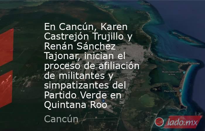 Cancún, Quintana Roo, 5 de mayo.- Arropados por la militancia del Partido Verde en Quintana Roo, la líder nacional y el dirigente estatal del PVEM, Karen Castrejón Trujillo y Renán Sánchez Tajonar, respectivamente, iniciaron el proceso de afiliación formal de la militancia Verde, rumbo al 2027, cuya meta es sumar más de 50 mil militantes [