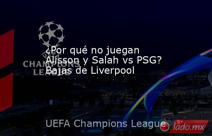 Alisson Becker y Mohamed Salah son las grandes ausencias en el once inicial del Liverpool para enfrentar al PSG en la vuelta de los cuartos de final de la UEFA Champions League. El conjunto de Anfield tiene la difícil misión de remontar el 0-2 sufrido en el Parque de los Príncipes, un resultado que dejó …