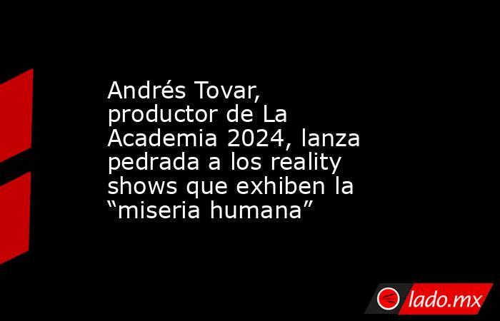 Andrés Tovar lanza crítica a reality shows por exhibir pobreza humana.