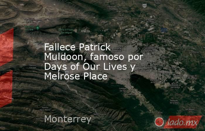 Fallece Patrick Muldoon, famoso por Days of Our Lives y Melrose PlaceLa triste noticia del fallecimiento de Patrick Muldoon a los 57 años conmueve a los fans de la cultura pop.Este artículo es un contenido original de Monterrey Rock