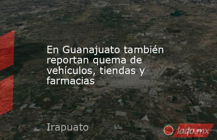 En Irapuato autoridades de los tres niveles de gobierno activaron operativos de seguridad para atender diversas emergencias relacionadas con la quema de tiendas Oxxo, Farmacias Guadalajara y camiones de pasajeros en carreteras federales Tiendas Oxxo, Farmacias Guadalajara y vehículos fueron incendiados en Irapuato, hasta donde se extendieron los i