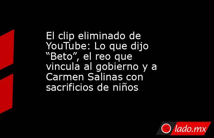 El clip eliminado de YouTube: Lo que dijo “Beto”, el reo que vincula al gobierno y a Carmen Salinas con sacrificios de niños Ciudad de México, México. Un episodio reciente del podcast Penitencia, conducido por Saskia Niño de Rivera, generó controversia tras difundirse un fragmento en el que un interno identificado como “Beto” realizó
