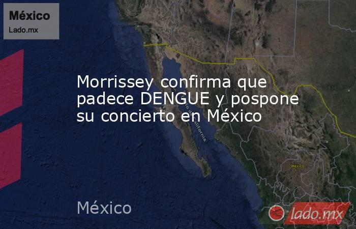 P. Jiménez Este domingo 10 de septiembre Morrissey se habría presentado en el Palacio de los Deportes como parte de su gira para celebrar sus 40 años de carrera, sin embargo, un día antes del show Ocesa reveló que el show había sido pospuesto por una enfermedad que aquejaba al exlíder de The Smiths.Hasta ese momento se desconocía la enferme