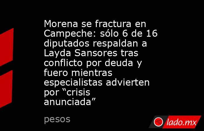 La confrontación entre la gobernadora Layda Sansores y el Congreso de Campeche escaló a una crisis interna en Morena, tras el rechazo de diputados al endeudamiento estatal por mil millones de pesos, el cerco policiaco al Palacio Legislativo, la restitución del fuero y el uso de alcaldes como contrapeso político, en un escenario que analistas ca