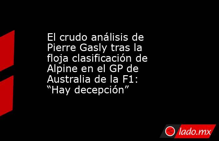Tras una clasificación con mal desempeño del A526 que dejó al argentino 16° y a Pierre Gasly 14°, el piloto afirmó: “Es muy difícil solucionarlo tan rápido”