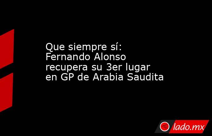 Sin embargo, horas después la FIA rectificó a Alonso, de 41 años, en el tercer lugar del GP de Arabia Saudita, repite por tanto el tercer puesto logrado en Baréin; y confirma su podio número cien en la categoría reina.