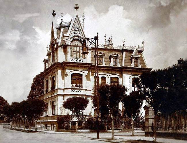 La gran casa a manera de villa italiana quedó en el centro del terreno triangular, en cuyos ángulos quedaron tres hermosos jardines. La casona de cuatro pisos con un semisótano, buhardilla y una pequeña torre que mira hacia las calles de Havre y Hamburgo quedó lista para 1907 con casi 800 metros cuadrados dentro de la mansión.