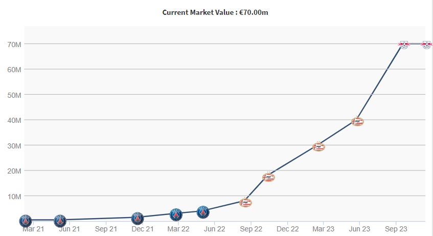 Se fue directo al PSG y no ha encontrado su lugar en la plantilla parisina, por lo que ha estado de equipo en equipo, pero a pesar de ello, su valor sigue aumentando porque club al que va, se convierte en crack.